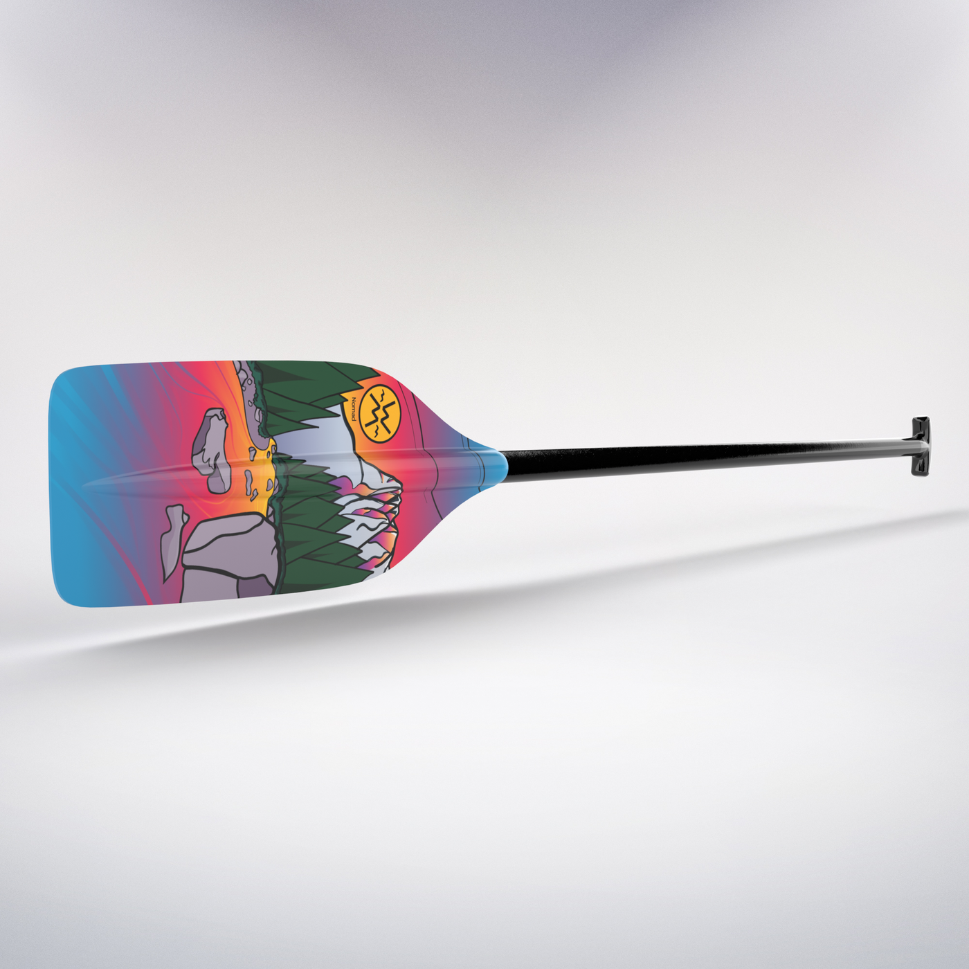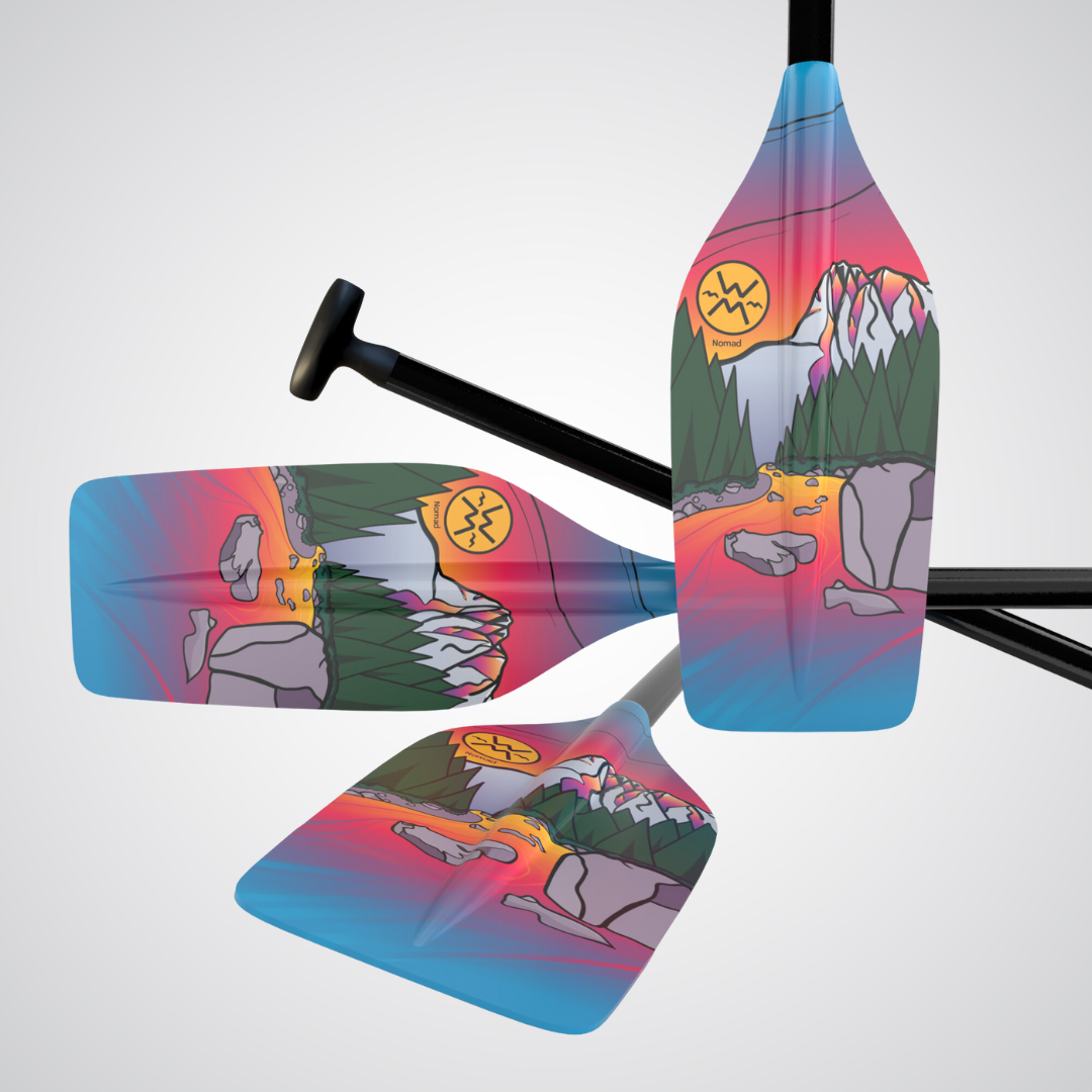 For rafters looking for the utmost performance and durability. Whether you are R2’ing down your favorite creek, or running big water within a larger team, the tapered blade shape is an excellent option. Available in a stunning silhouette pattern of Split Rock on the Skykomish River, WA we’re calling “Dugan’s Sky: Alpenglow”. The Nomad is an all around rafting paddle featuring a fiberglass oval shaft and tapered blade design.